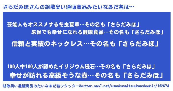| 意味不明あだ名 | 『とにかく怪しいさらだみほ』 |