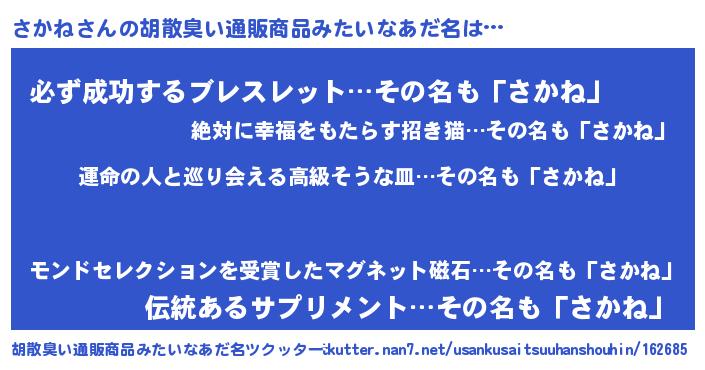 | 意味不明あだ名 | 『さかねフォーエバー』『ペロリンさかね』 |
