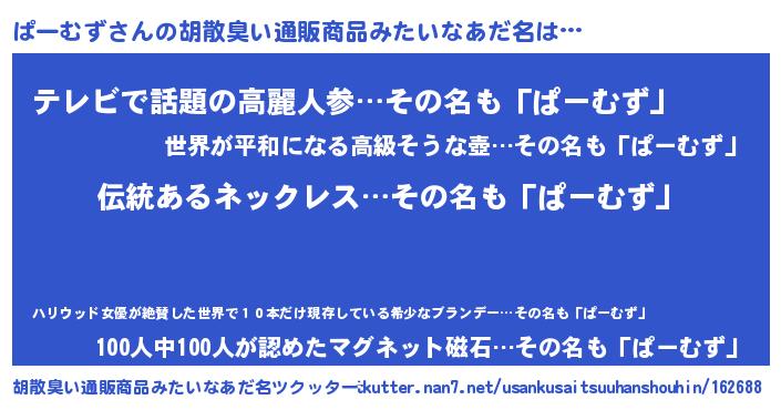 | 意味不明あだ名 | 『とにかく怪しいぱーむず』 |