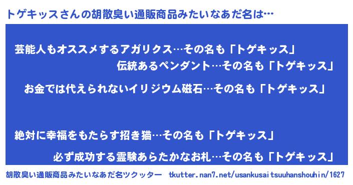 | ヘコむあだ名 | 『トゲにゅー』『トゲ太郎』 |