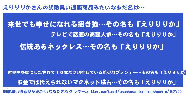 | 意味不明あだ名 | 『とにかく怪しいえりりりか』 |