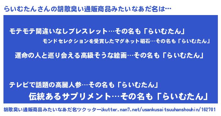 | 欧米人風あだ名 | 『らいむたんクリステル』 |