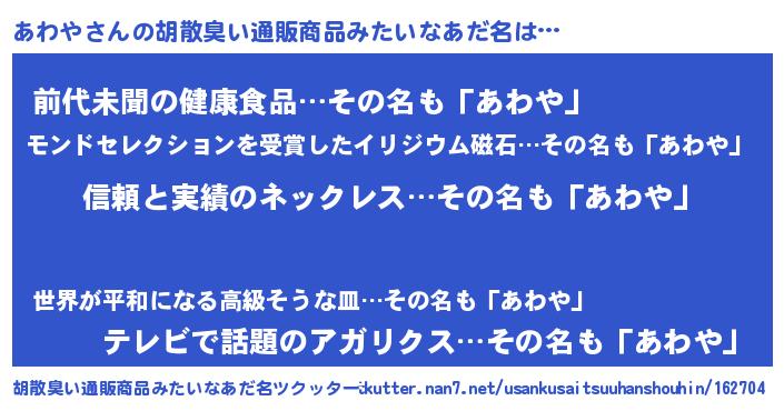 | 意味不明あだ名 | 『とにかく怪しいあわや』『自称あわや』 |