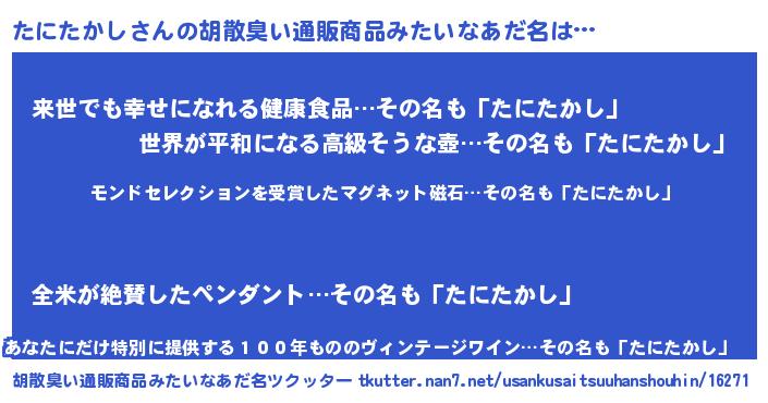 | ヘコむあだ名 | 『たにたかし(笑)』『なまこ酢』 |