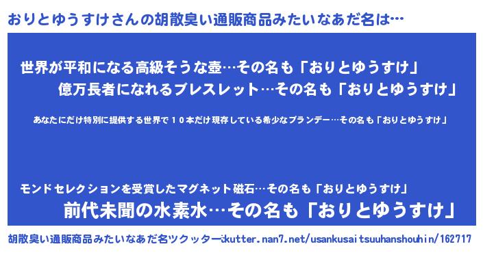 | 意味不明あだ名 | 『住所不定無職おりとゆうすけ(91歳)』 |