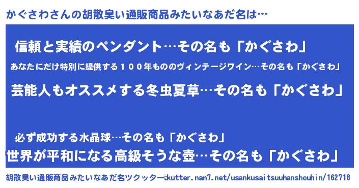 | 意味不明あだ名 | 『自称かぐさわ』『かぐさわフォーエバー』 |