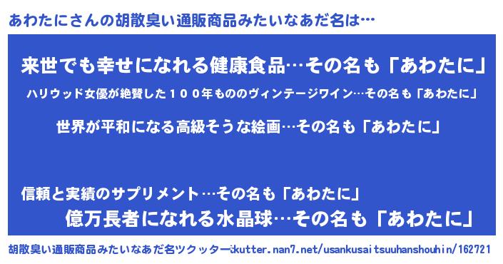 | ヒーロー風カッコイイあだ名 | 『ウルトラあわたにマン』『ネオアワタニ』 |