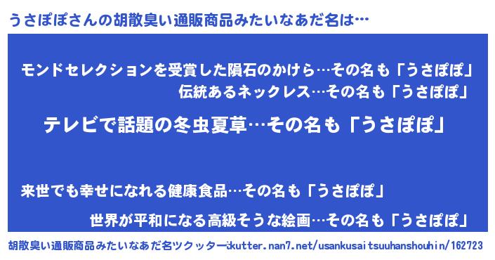 | 欧米人風あだ名 | 『アンジェラ・うさぽぽ』 |