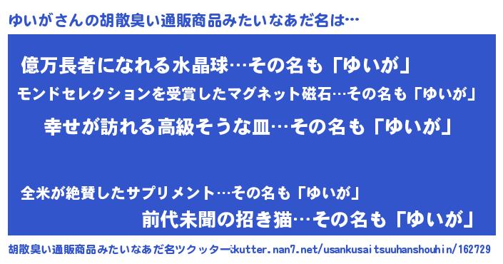 | 欧米人風あだ名 | 『ゆいがクリステル』『マイケルゆいが』 |