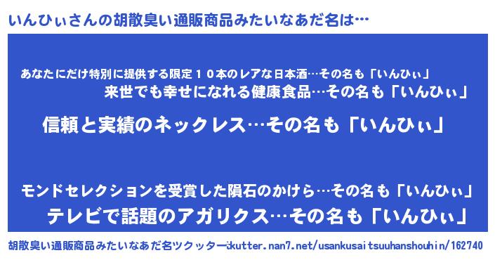 | 意味不明あだ名 | 『とにかく怪しいいんひぃ』 |