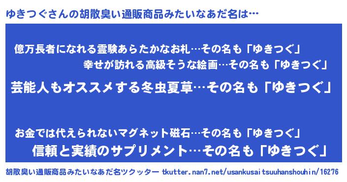 | 男性向けラノベタイトル風あだ名 | 『Re:ゆきつぐから始める異世界生活』 |
