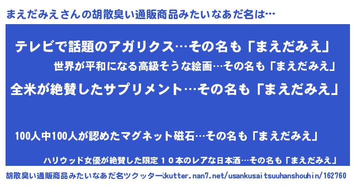 | 意味不明あだ名 | 『とにかく怪しいまえだみえ』 |