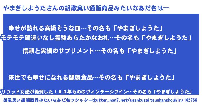| 意味不明あだ名 | 『とにかく怪しいやまぎしようた』 |