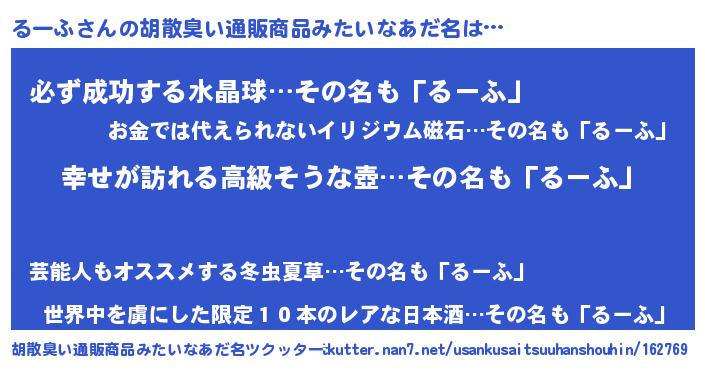 るーふさんの胡散臭い通販商品みたいなあだ名をツクッター!