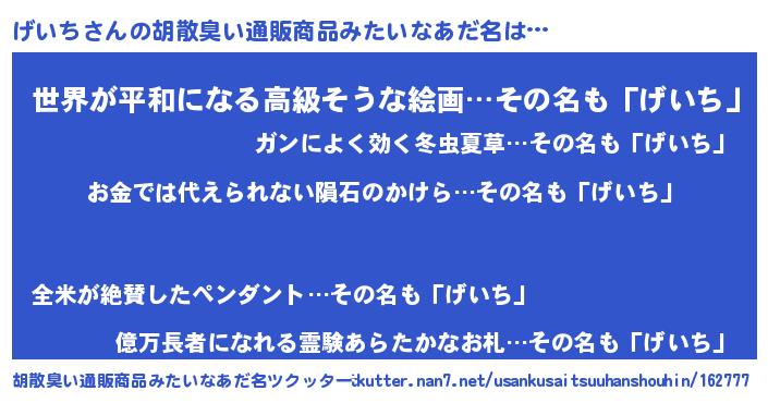 | ポケモン風あだ名 | 『ゲックウザ』『ゲイチダネ』 |