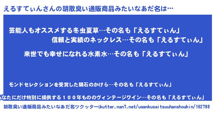 | 意味不明あだ名 | 『永久保存えるすてぃん』 |