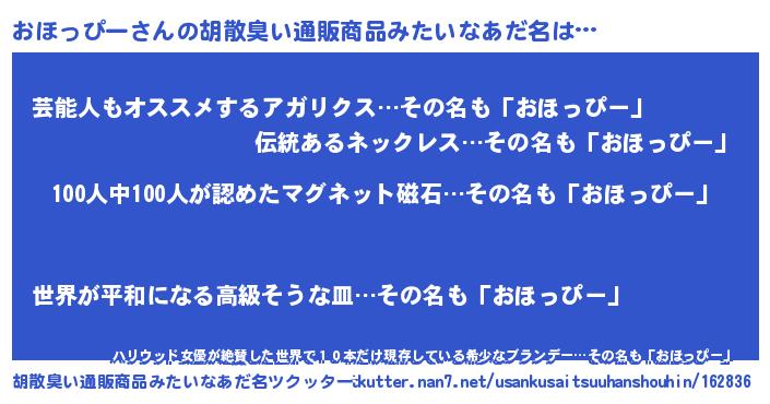| ヒーロー風カッコイイあだ名 | 『正義の使者おほっぴー』『仮面オホダー』 |