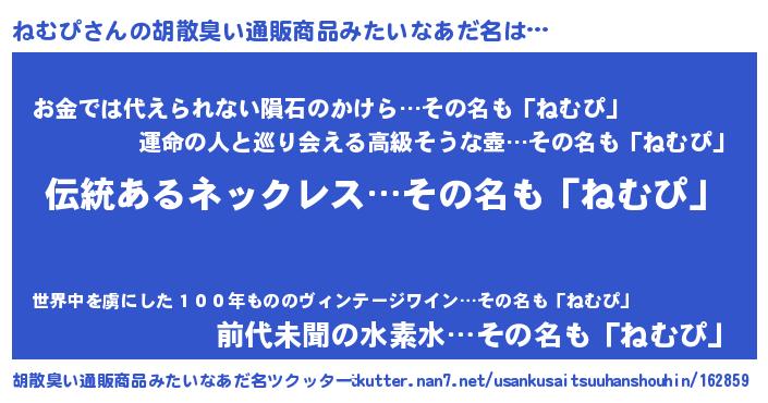 | 意味不明あだ名 | 『とにかく怪しいねむぴ』 |