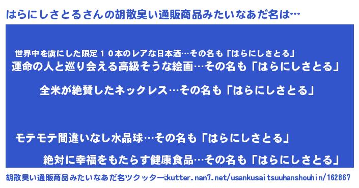 | 意味不明あだ名 | 『とにかく怪しいはらにしさとる』 |
