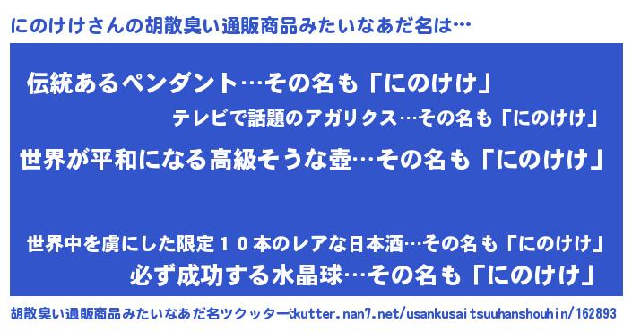 にのけけさんの胡散臭い通販商品みたいなあだ名をツクッター!