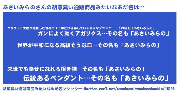あさいみらのさんの胡散臭い通販商品みたいなあだ名をツクッター!
