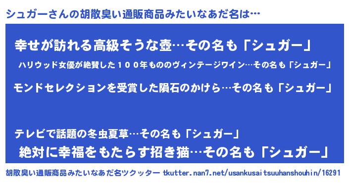 | ヒーロー風カッコイイあだ名 | 『天空の使者シュガー』『ネオシュガー』 |