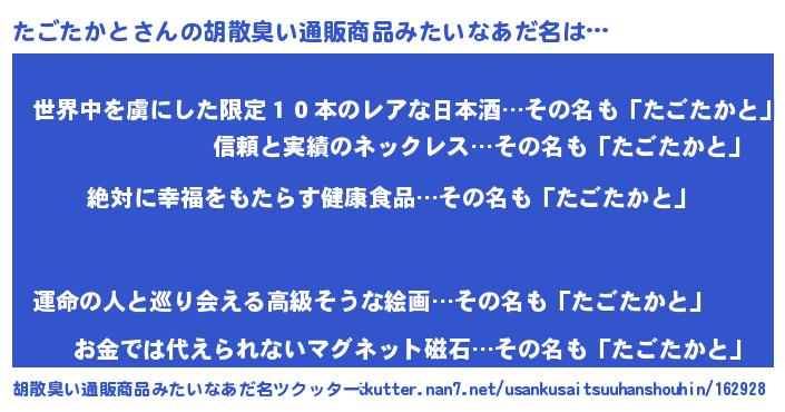 | 意味不明あだ名 | 『永久保存たごたかと』 |