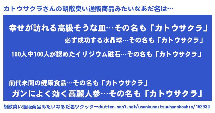 カトウサクラさんの胡散臭い通販商品みたいなあだ名をツクッター!