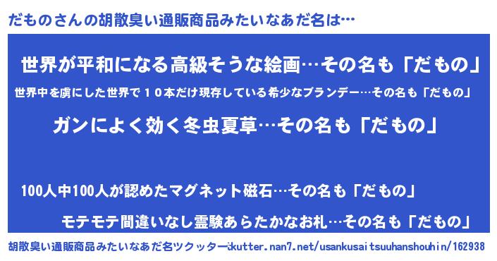 | 意味不明あだ名 | 『エリンギ科だもの属』『自称だもの』 |