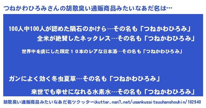 | ヘコむあだ名 | 『つねかわひろみ(爆)』『つねっちょ』 |
