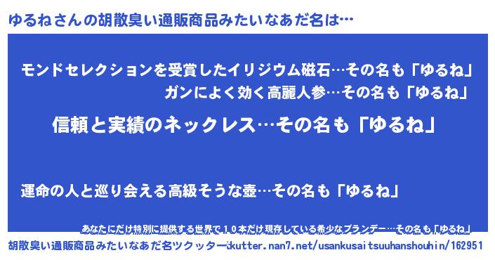 | 意味不明あだ名 | 『とにかく怪しいゆるね』『自称ゆるね』 |