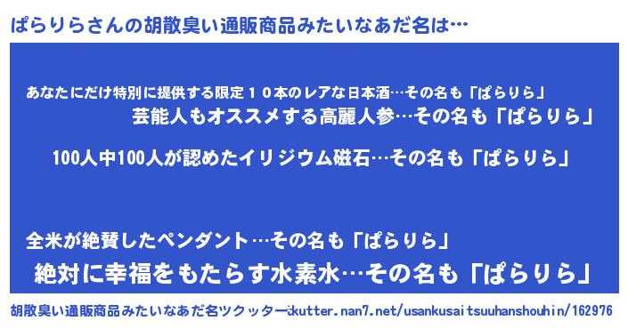 | ヘコむあだ名 | 『ぱらりら(笑)』『ぱら太郎』 |