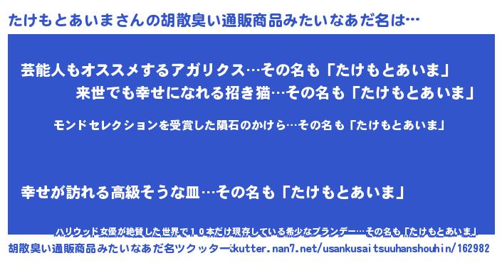| ヘコむあだ名 | 『たけもとあいま(遠い目)』『レバニラ』 |