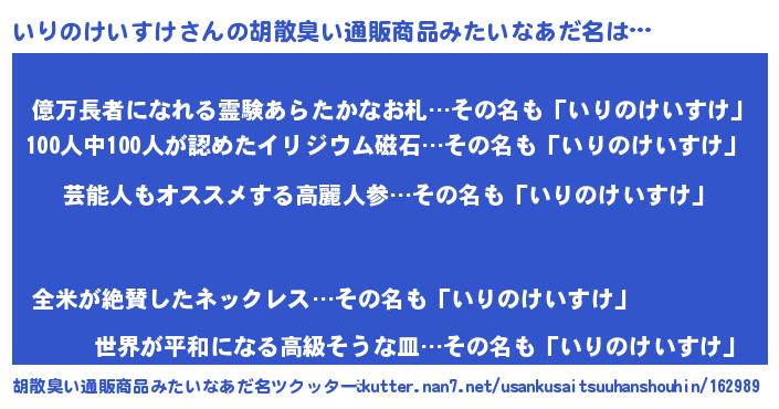 | 意味不明あだ名 | 『自称いりのけいすけ』 |