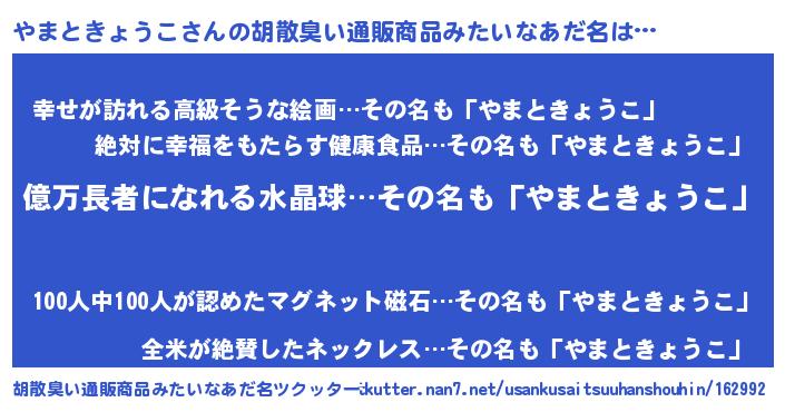 | 欧米人風あだ名 | 『マイケルやまときょうこ』 |