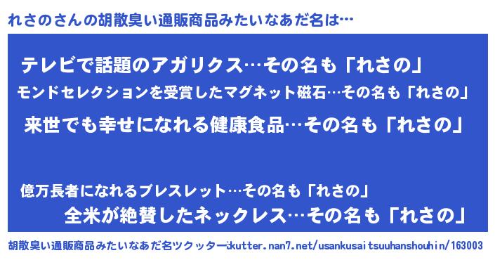 | 意味不明あだ名 | 『なめこ科れさの属』『永久保存れさの』 |