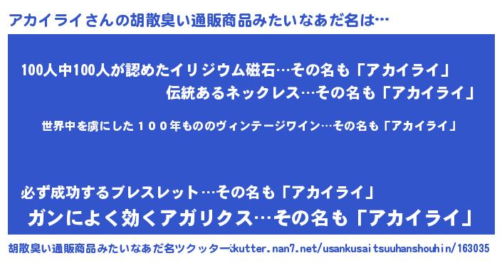 | 意味不明あだ名 | 『住所不定無職アカイライ(11歳)』 |