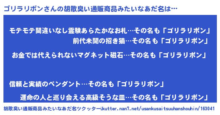 | 欧米人風あだ名 | 『ダニエルゴリラリボン』 |