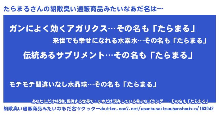| ヘコむあだ名 | 『たらを』『たらまる(笑)』『豆乳』 |