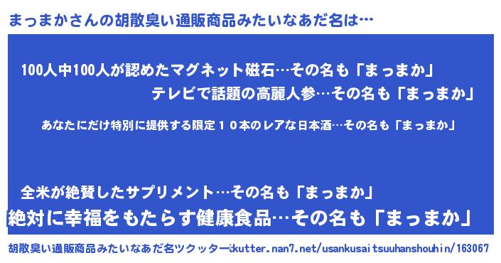 | 意味不明あだ名 | 『住所不定無職まっまか(50歳)』 |