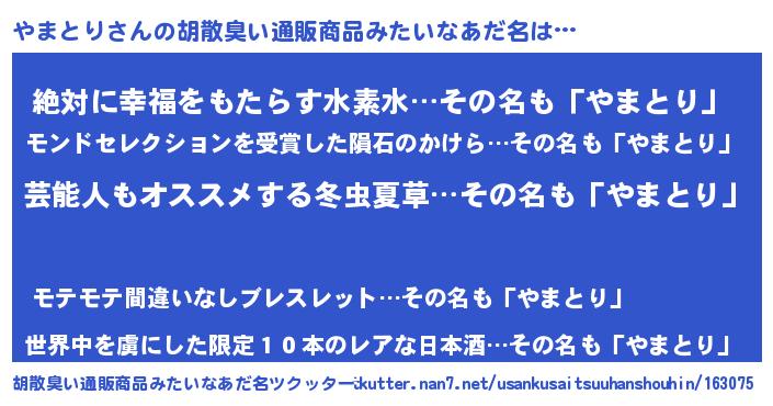 | ヘコむあだ名 | 『やまとり(震え声)』『やまもー』 |
