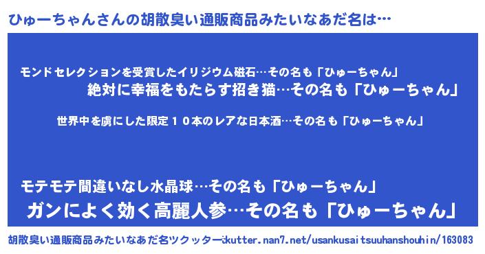 | ヘコむあだ名 | 『ひゅーちゃん(爆)』『ひゅにゅー』 |