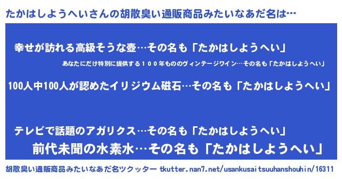 | 意味不明あだ名 | 『眠気覚ましガムたかはしようへい味』 |