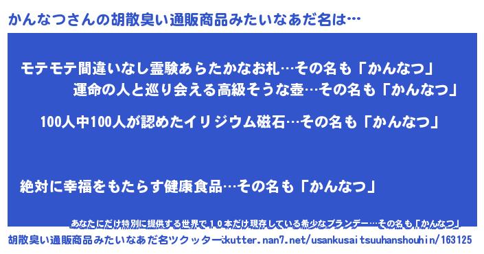 | ヘコむあだ名 | 『かんにゅー』『豆乳』『かんぷりん』 |