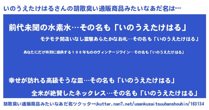 | ヘコむあだ名 | 『いのうえたけはる(笑)』『いのっちょ』 |