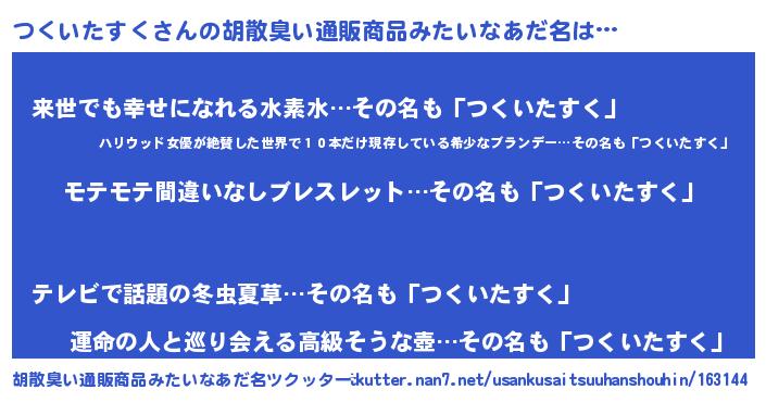 | 恥ずかしいあだ名 | 『プリティーつくいたすく』『つくちん』 |