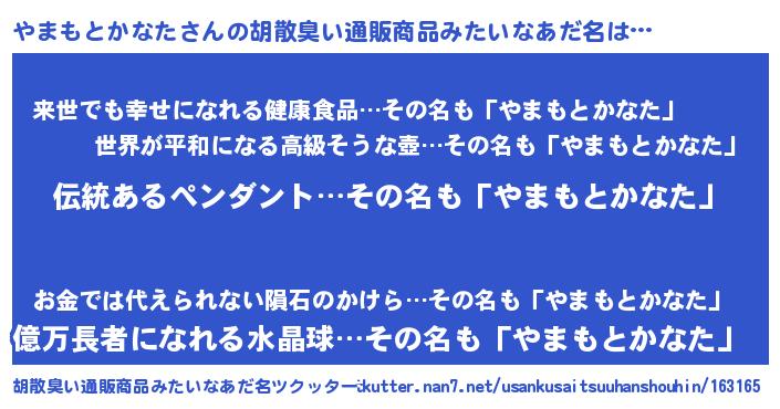やまもとかなたさんの胡散臭い通販商品みたいなあだ名をツクッター!