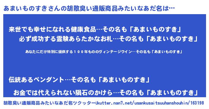 | 意味不明あだ名 | 『住所不定無職あまいものすき(5歳)』 |