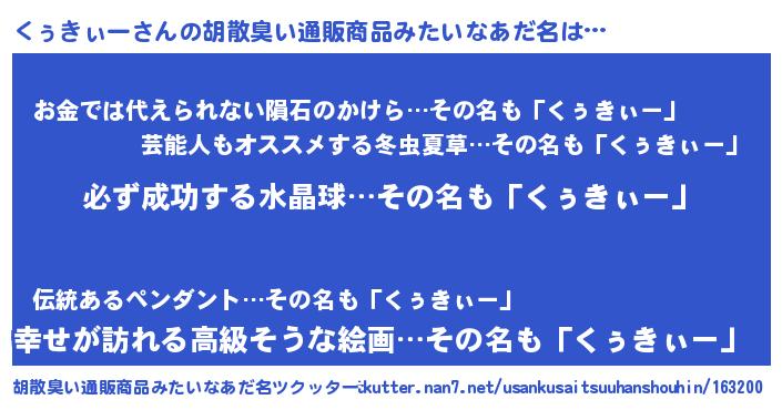 | ヘコむあだ名 | 『くぅにゅー』『なまこ酢』 |