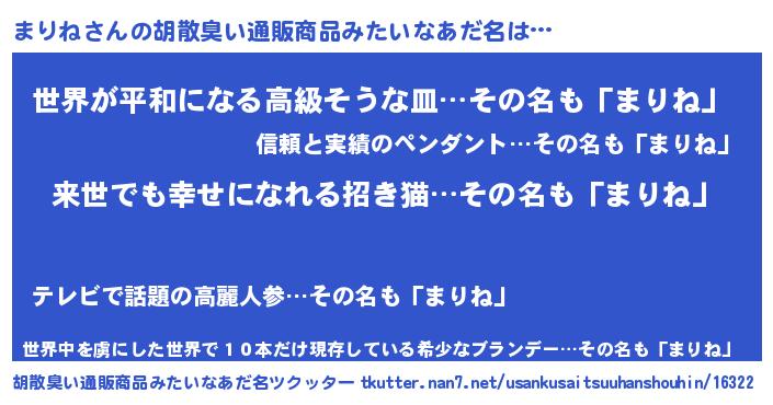 | 意味不明あだ名 | 『永久保存まりね』『まりねフォーエバー』 |